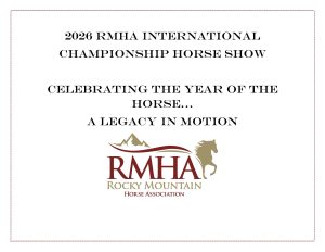 The 38th Annual Rocky Mountain Horse Association International Grand Championships will take place Wednesday, September 2 through Saturday, September 5, 2026 at the Kentucky Horse Park, Covered Arena in Lexington, Kentucky. Horses representing the Rocky Mountain Horse breed from all over the country will come together to compete for the once in a lifetime chance to be crowned Grand Champion. Whether you are a horse owner, or just have an interest or curiosity about horses, this is a terrific opportunity to meet and see a wonderful cross section of horses that make up the Rocky Mountain Horse breed.